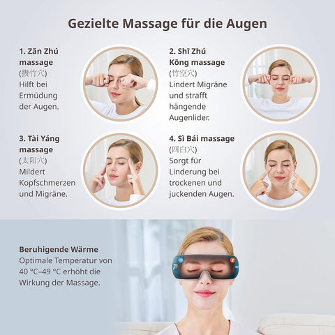 Augenmassagegerät - Massagebrille mit Stimmungslicht und Wärmefunktion zur Linderung von Kopfschmerzen, Schlaflosigk...