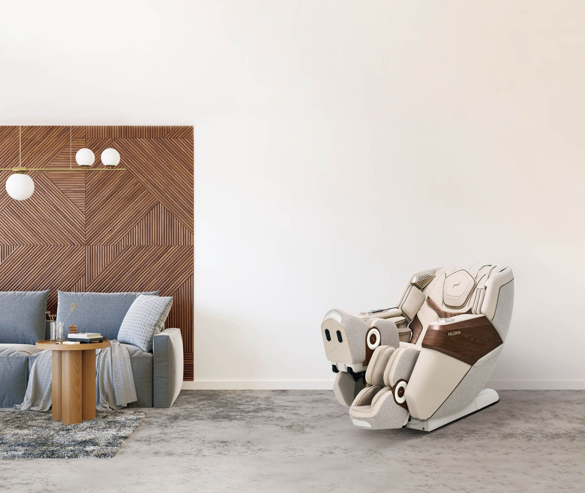 Hoewel de Falcon massagestoel een robuuste constructie heeft die tot 100 kg kan dragen, past hij toch goed in huis. Hij is groot genoeg om u een omhullende massage-ervaring te bieden, maar ontworpen met een strakke en moderne uitstraling die in de meeste kamers past.