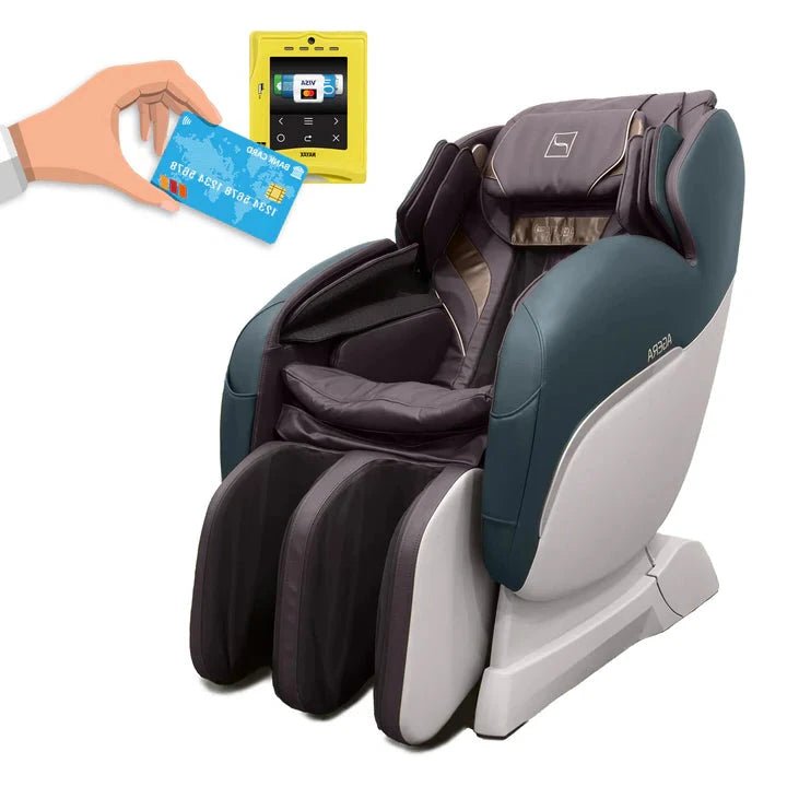 Sie können den Stuhl mit einem NAYAX-Zahlungsterminal verbinden, um Ihren Kunden kostenpflichtige Massagesitzungen anzubieten. Sie programmieren die Dauer der Sitzungen und den Preis und ernten den Gewinn auf Ihrem Online-Konto.